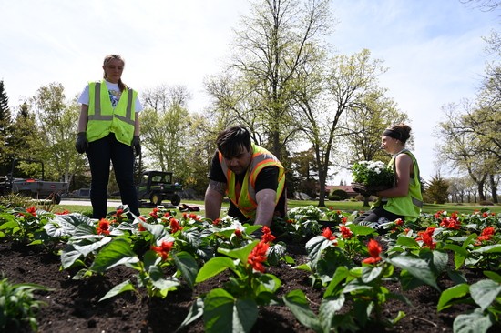 The grounds crew transforms the University of Minnesota Crookston every spring. Staff and student workers plant flowers and care for the grounds making the campus a summer stop for many.