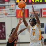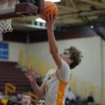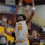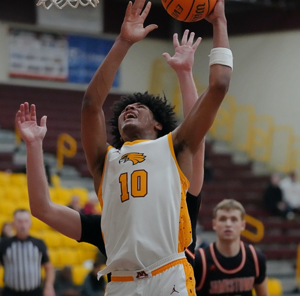 Jamestown started the second half with a layup 14 seconds into the half before UMC responded with an Alijah Washington three-pointer and a Swenson free throw for a 41-35 lead. Jamestown answered with five points to get within a 41-40 deficit less than three minutes into the half. Crookston’s Mukoma Jr. hit a big three-pointer, and after a Jamestown three, J.D. Roberts buried a three-pointer for a 47-43 lead. The back-and-forth battle continued, and Crookston led 55-52 eight minutes into the half. Jamestown made two free throws and added a layup to take its first lead of the game 56-55.