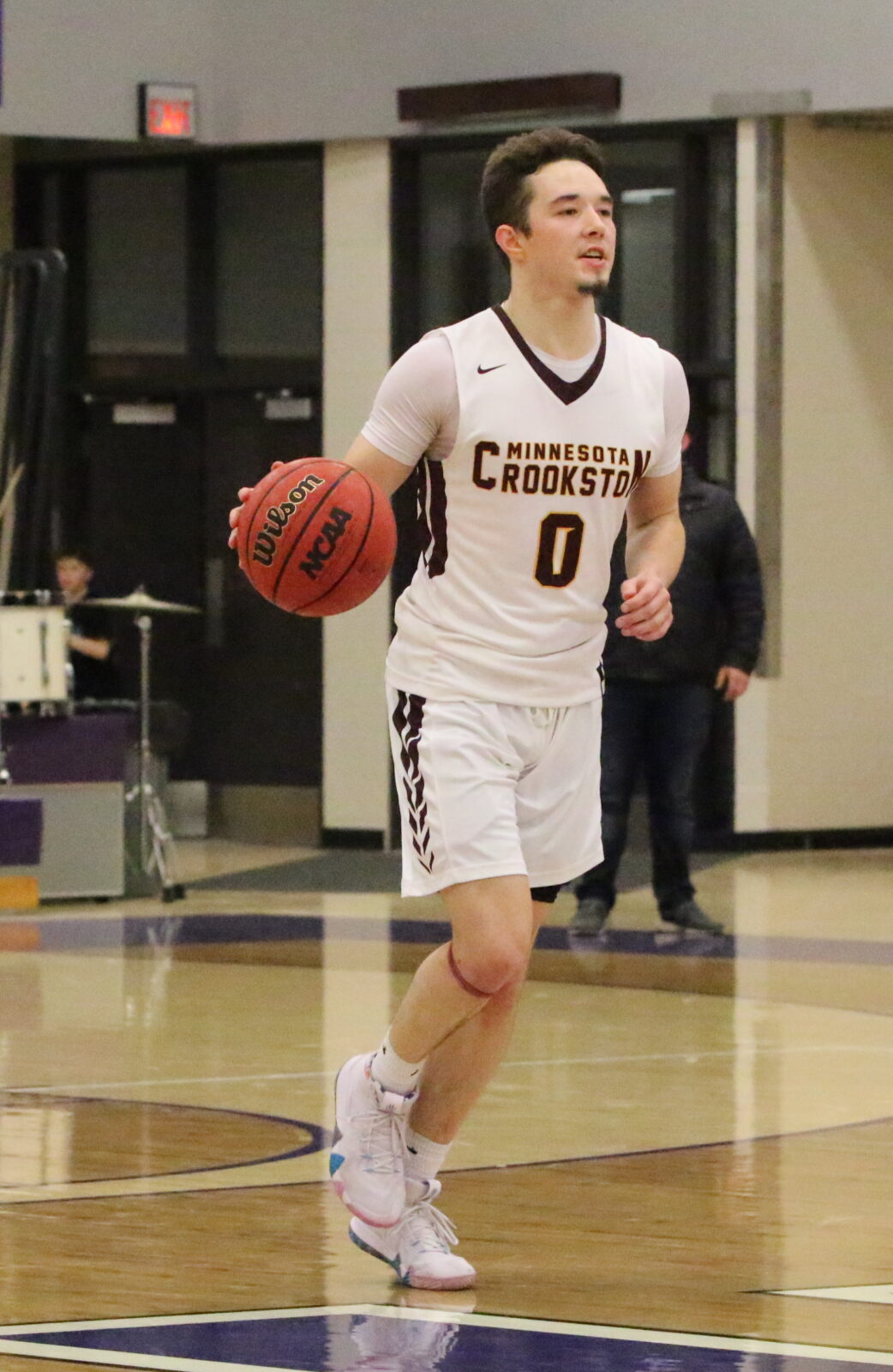 Sioux Falls opened the game with the first four points before UMC’s Harrison Cleary (Jr., Oak Creek, WI) scored following a drive to the basket trimming the deficit down to 4-2. The Cougars followed with a 9-0 run to take a 13-2 lead before Malcolm Cohen (R-Jr., Detroit, MI) made a jump shot giving pulling the Golden Eagles within 13-4 with 15:22 to play in the opening half. The Cohen jumper led to four-straight points from Chase Knickerbocker (Sr., Annandale) who played an inspired first half off the bench. A Knickerbocker three-pointer with 12:19 left in the first half brought UMC within 17-14 and a 7-0 run capped off by a Cohen three-pointer with 9:39 left in the opening half gave Minnesota Crookston a 23-21 lead. Five-straight points from Sioux Falls put the Cougars back on top. A Harrison Cleary three-pointer a few possessions later responded for the visitors giving UMC a 30-29 lead. Sioux Falls pulled ahead 39-32 thanks to a 10-2 run with a three-pointer closing out the first half with the Cougars in front 44-37. “They had other guys kind of beat us,” said Minnesota Crookston coach Dan Weisse of USF’s first-half offense. “They made some shots we weren’t prepared for them to make so give them credit for that. We had a good halftime preparation talk and our guys executed that game plan.”