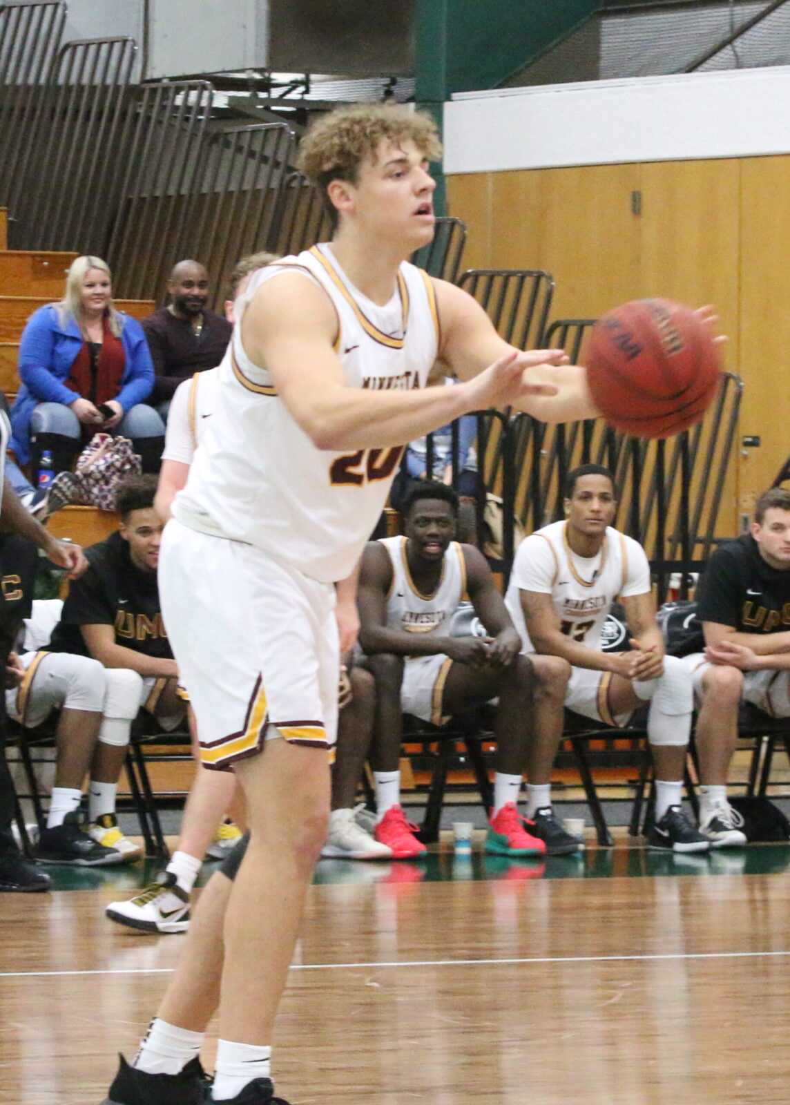 In the second half, Concordia-St. Paul opened the half with a 5-0 run taking a 37-30 lead. Minnesota Crookston responded with several key stops before Javier Nicolau (Sr., Castellon, Spain) took a pass from Harrison Cleary in the lane and dunked the ball with two hands giving UMC their first lead of the night. Minnesota Crookston took its largest lead of the night at 57-50, but the Golden Bears scored eight straight points gaining a 58-57 lead. Nicolau split a pair of free-throws giving Minnesota Crookston a 74-73 lead before Brian Sitzmann buried a three-pointer, putting UMC ahead 77-73 with 1:07 to play. Jordan Coblin cut the UMC lead down to 2 but missed a free-throw failing to complete the three-point play. Javier Nicolau rebounded the missed free-throw and was fouled, but missed both free-throws giving Concordia-St. Paul a shot to tie or win the game with 0:06 remaining. Javier Nicolau was switched on to Jordan Coblin, who fired a fadeaway three-pointer for the win, but the shot missed off the heel of the rim as Minnesota Crookston hung on for a 78-76 win. “This was a tricky one for sure,” summarized Weisse. “I give Concordia a ton of credit. They’re an improved team from last year. I also think we’re an improved team from last year. We made enough plays. It wasn’t always pretty, but that was a Northern Sun basketball game in a lot of ways. Javy (Nicolau) did a perfect job guarding that last possession there. It’s always better to not be satisfied after a win rather than a loss.”