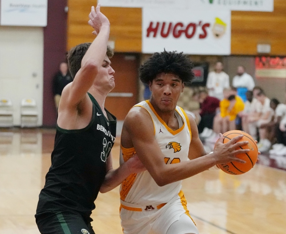 The Bemidji State Beavers scored 56 second half points to beat the University of Minnesota Crookston Golden Eagle men’s basketball team 87-77 at Lysaker Gymnasium in Crookston.