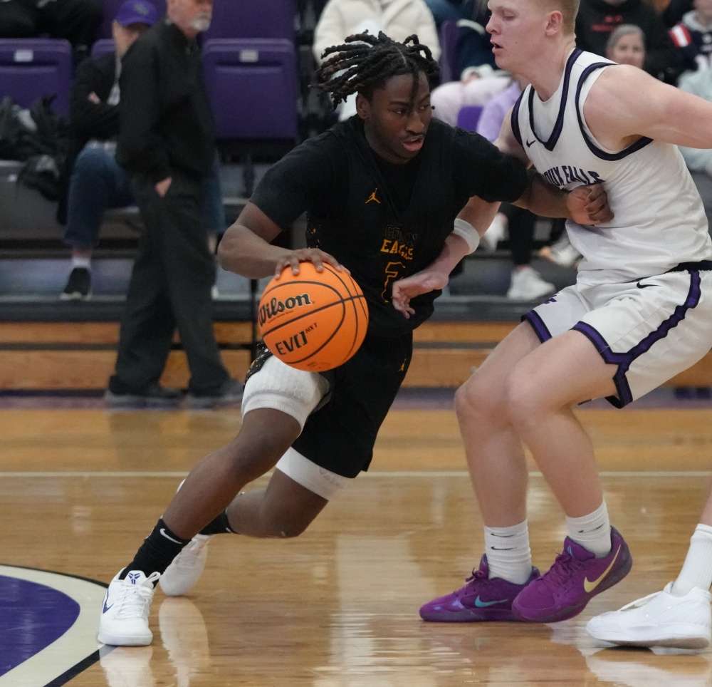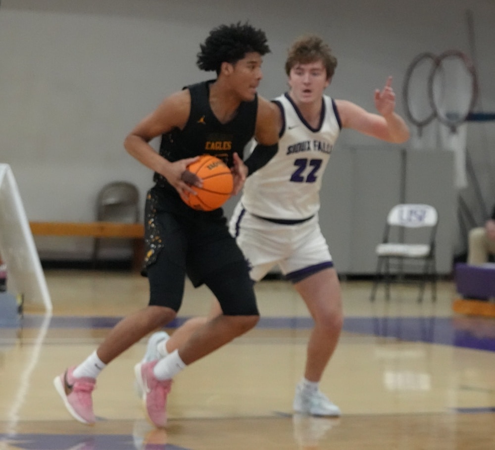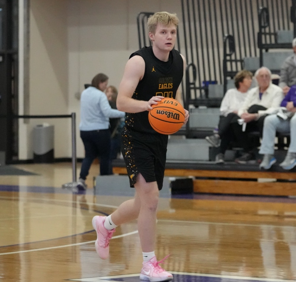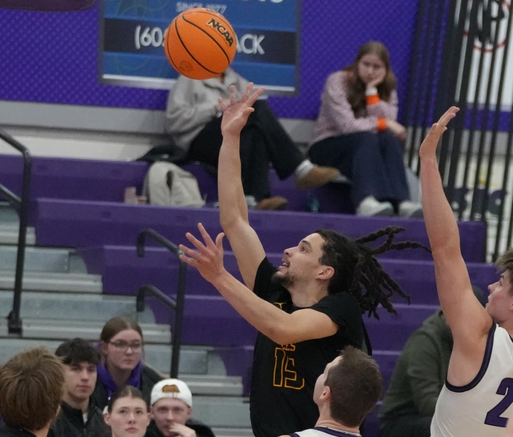 The University of Minnesota Crookston Golden Eagle men’s basketball team’s Spencer Swenson scored a career high 27 points and grabbed a career high 13 rebounds and his teammates made seven free throws in the final 50 seconds to beat the University of Sioux Falls Cougars 85-79 in a Northern Sun game in Sioux Falls, South Dakota.