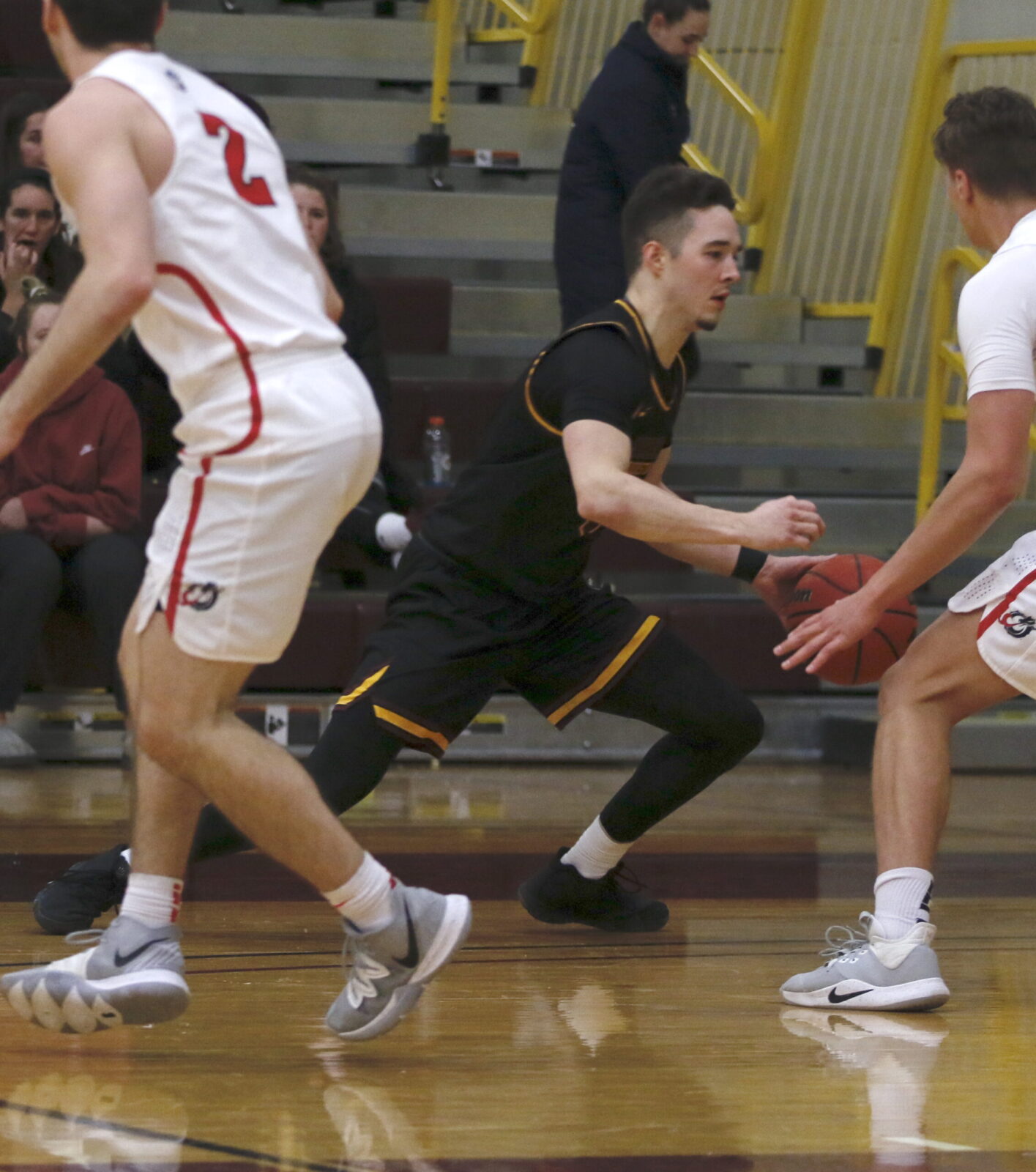 Minnesota Crookston’s offense used a torrid start to carry a double-digit lead into halftime. Javier Nicolau (Sr., Castellon, Spain) started the game with a pick-and-roll dunk facilitated by Harrison Cleary (Sr., Oak Creek, WI) before Cleary made a three-pointer giving the Golden Eagles a 5-0 lead. After the Dragons first basket, Cleary added another three-pointer extending Minnesota Crookston’s lead to 8-2. After MSU-Moorhead scored its second basket, UMC used a 7-0 run capped off by a Brian Sitzmann (R-Soph., Savage) three-pointer increasing the Golden Eagles’ lead to 15-4. MSU-Moorhead used a 9-2 run to pull within 19-14 later in the half, but Minnesota Crookston again responded with nine-straight points taking a 28-14 lead with 7:23 to play in the opening frame. Harrison Cleary made two free-throws for the final points of the half as the Golden Eagles carried a 45-32 lead into halftime. “(The strong offense start) is huge,” said UMC head coach Dan Weisse. “We’ve had some struggles early in games, but today we had some guys hit some big shots. I don’t know why it always is, but our defense was fantastic tonight throughout the 40 minutes. I just think the energy does pick up when the ball goes in the hole.”