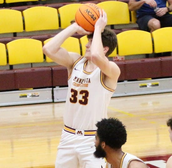 The University of Minnesota Crookston Golden Eagle Men’s Basketball team came up with big shots when they needed them and held on to beat the Winona State Warriors 77-69 in a Northern Sun Conference game at Lysaker Gymnasium in Crookston.