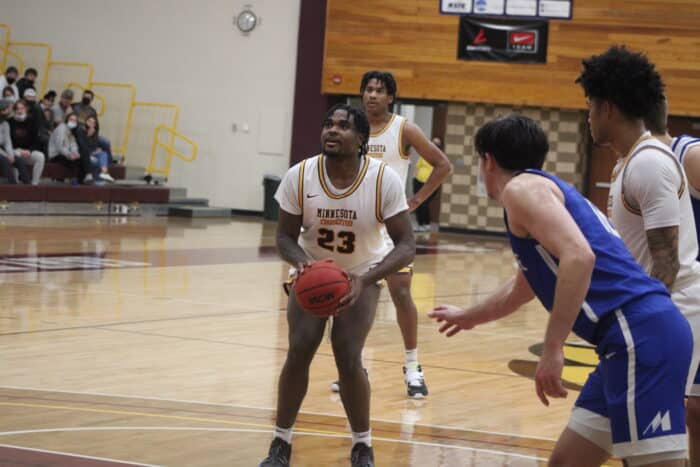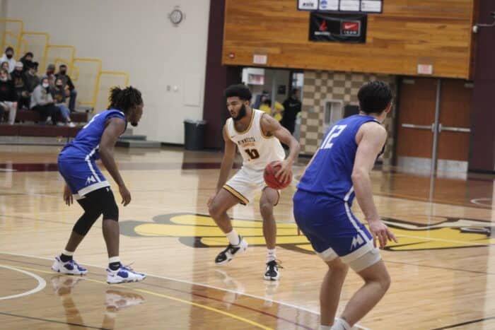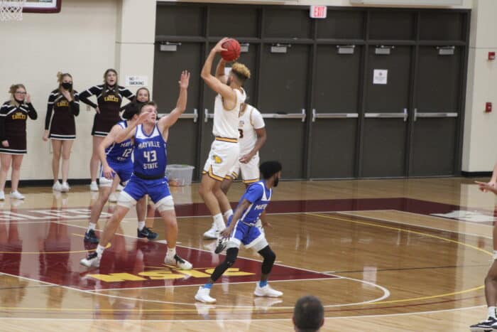 UMC started the second half on fire on the offensive and defensive end as they outscored Mayville State 24-4 in the first eight minutes of the half for a 60-43 lead with 12 minutes left. 17 of the 24 points were scored by Dixon as he had all 32 of his points with 12:09 let in the game! Mayville slowly chipped away at the deficit and got within single digits (71-62) with 4:06 left in the game. UMC answered with six points of their own to build a 77-62 lead and held on in the final two minutes for an 81-70 victory.