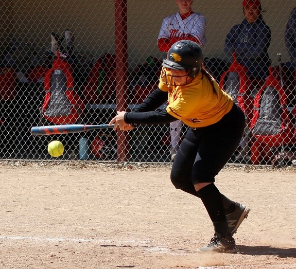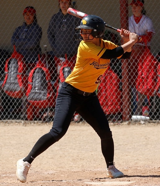 The game stayed scoreless until the bottom of the second when the Golden Eagles got on the board. Dana Zarn (So. Winnipeg, Manitoba) doubled to start the inning and Hannah Macias (Jr. West Covina, CA) singled and stole second after trying to get in a rundown to put two runners in scoring position. After Zarn and Macias got out of another hectic rundown, a walk loaded the bases and Hailey Hatfield (Fresh. Olathe, KA) brought in a run on a groundout. “We knew from the get-go you have to outscore Minot because they are going to hit. They are a good hitting team,” said Golden Eagles Head Coach Travis Owen.