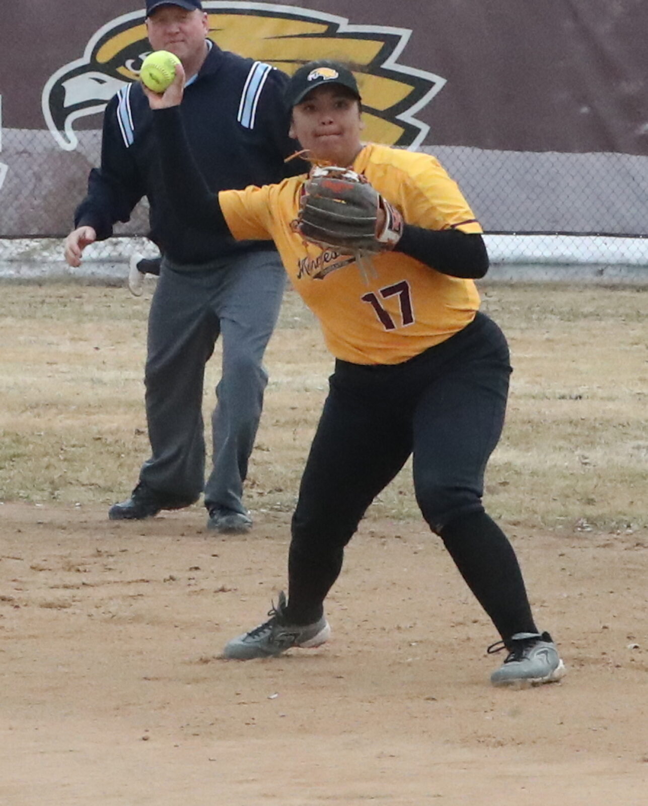 The University of Minnesota Crookston (UMC) softball team earned their first home win of the season, setting a new school record with thirteen wins in one season, on Saturday after splitting a doubleheader winning game one 4-3 before dropping game two 3-0 against Northern State in a pair of NSIC games played at the UMC Softball Field.