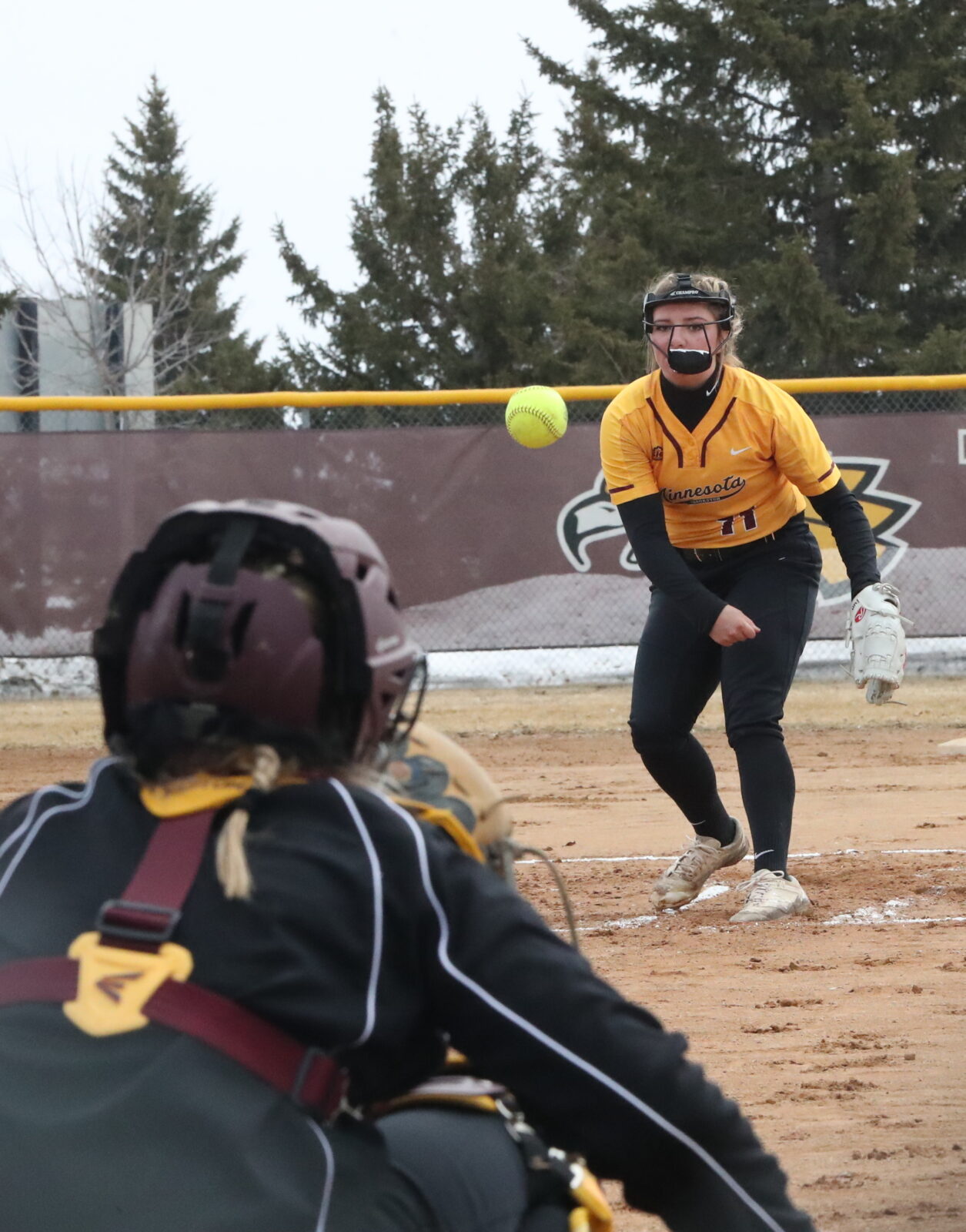 GAME ONE – Leah Macias (Fr., West Covina, CA) doubled for Minnesota Crookston to open the bottom of the third inning trying to score the first run of the game. Haley Strachan (Sr., Phoenix, AZ) delivered a single to left field to plate Macias from second base giving the Golden Eagles a 1-0 lead after three innings. Northern State took its first lead in the following inning. A walk put Northern State’s lead-off runner on base before a pair of outs set up the Wolves Maddison Rutter who connected on a two-run home run giving the visitors a 2-1 lead. Northern State added one more run with a sacrifice fly to take a 3-1 lead into the bottom of the fifth inning. Rocky Bjorge (Sr., Prior Lake) led off the bottom of the sixth inning with a solo home run trimming Minnesota Crookston’s deficit down to 3-2 heading into the final frame. In the bottom of the seventh inning, trailing by one run, J. Peterson was hit by a pitch to open the inning. A ground out allowed Peterson to advance to second base followed by a second straight ground out moving the tying run to third base. Malia Pula (Jr., Gilroy, CA) delivered a clutch hit to left field to plate Peterson tying the game at 3-3. Pula advanced to second base on a wild pitch giving the Golden Eagles the winning run in scoring position. Rocky Bjorge again delivered a timely hit knocking a single into left-center field allowing Pula to score from second base as Minnesota Crookston secured a 4-3 walk-off win. “Paige (Pitlick) had a great game,” said UMC head coach Travis Owen. “We just stuck with it and kept battling which is a great strength of this team and I thought regardless of what was going to happen it was just great to see us come back after yesterday and have that kind of battle.”