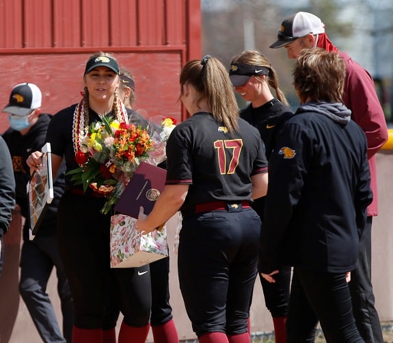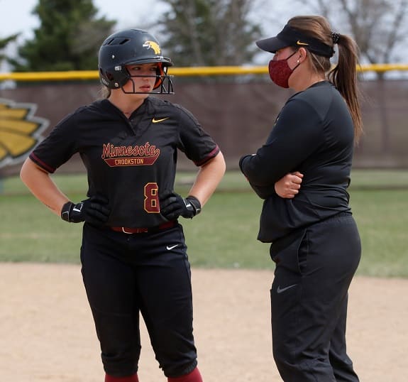 The University of Minnesota Crookston (UMC) Golden Eagles Women’s Fast Pitch Softball team put together a rally in the seventh inning, but it was a little too late as they fell in game one to the University of Mary Marauders 6-3. The UMC offense got it going in game two as they won by the run-rule, 11-2 to split the NSIC doubleheader on Senior Day in Crookston.