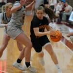 Crookston started the second quarter with a Miller basket before NMU scored the next four points for a 20-19 lead. UMC’s Jenkins answered with a three-pointer before the Wildcats made two free throws to tie the game at 22.  UMC regained the lead with two baskets by Miller before NMU answered with seven straight points froa. 29-26 lead with less than three minutes remaining in the half. UMC ended the half on a 5-3 run with a Dudycha basket and a Halle Winjum (Fresh. Crookston) three-pointer and Northern Michigan took a 32-31 lead at halftime.
