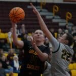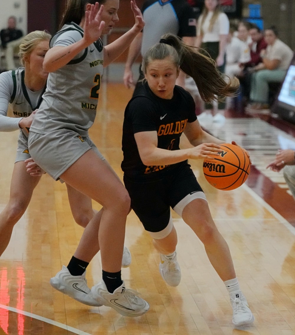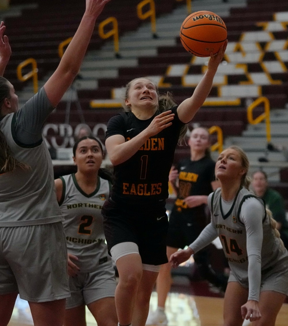The University of Minnesota Crookston Golden Eagle Women’s basketball team battled, but stuggled for a five minute stretch in the third quarter and that proved to be the difference in a 78-63 loss to #18 Northern Michigan on Sunday afternoon at Lysaker Gymnasium in Crookston.