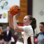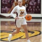 As the third quarter got underway, points became more scarce than they were before. Both teams were alternating buckets, with UMC getting help from Halle Winjum (Soph., Crookston) at the line, but they were struggling to get on a run to close the gap down any further. Once the Dragons increased their lead to 10 at 42-32, UMC was able to put together a 6-0 run to cut the lead down to 4 at 42-38, backed by Emma Miller, who got her game total to 15 points during this run. A 3-pointer by Riley Jenkins then cut the lead down to 3 at 44-41 with 1:43 to go, but the Dragons once again had an answer, preventing the Golden Eagkes from adding to the scoreboard and putting two more layups in, allowing them to go to the fourth quarter with a 48-41 lead.