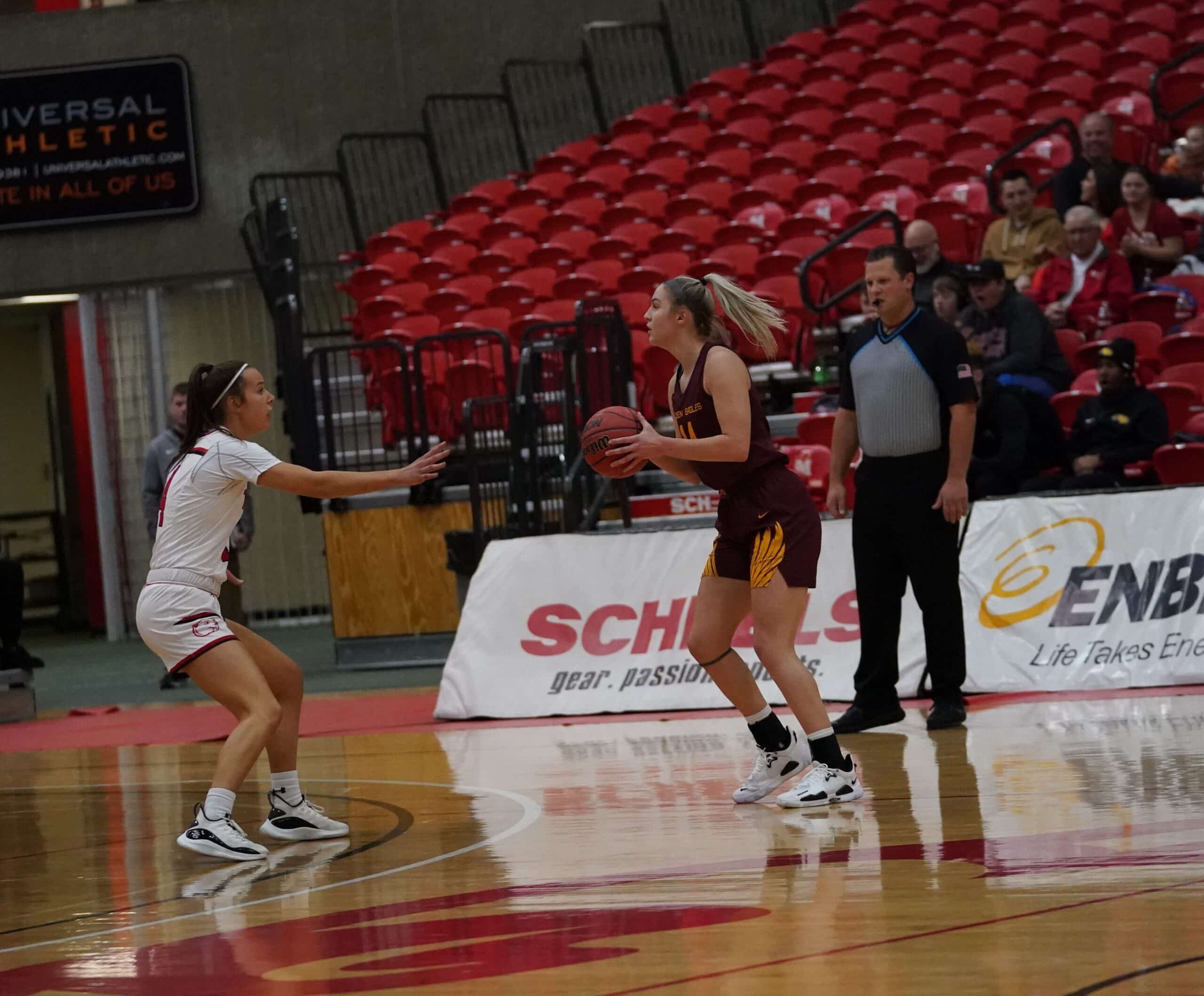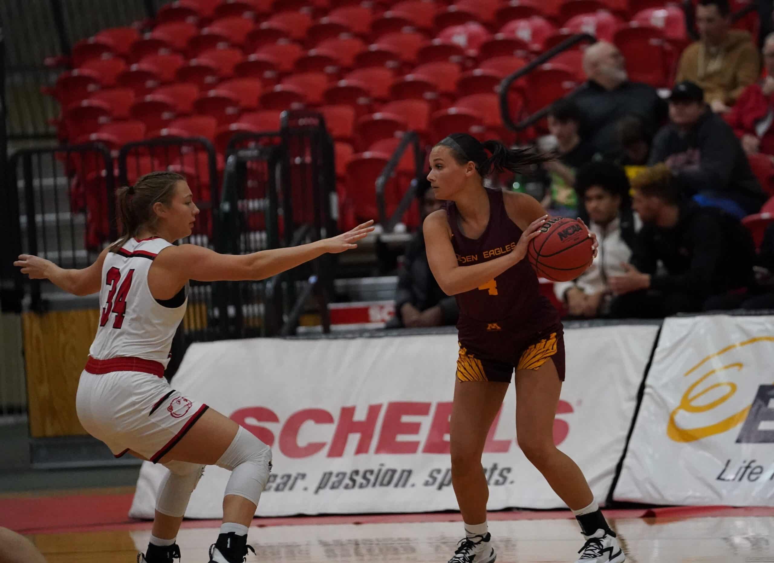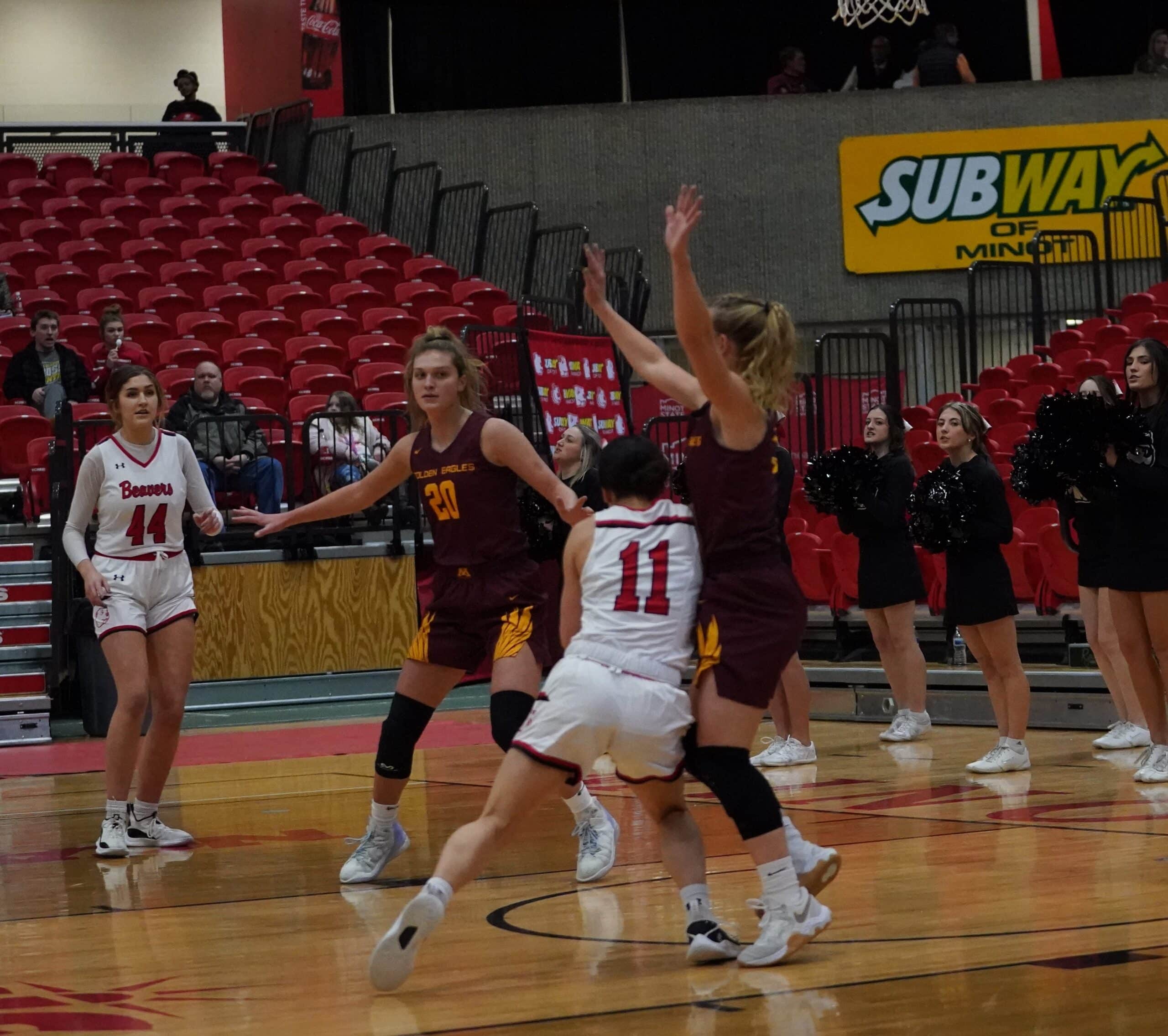 The University of Minnesota Crookston (UMC) Golden Eagles Women’s Basketball team hit the road this weekend for two NSIC games. The first was earlier this evening against the Minot State University Beavers in a game played in the Minot State Dome. It was a game highlighted by runs, and the Beavers would go on the last one to secure a 70-63 victory. “Basketball is a pretty simple game,” said UMC Head Coach Mike Roysland. “The game came down to who was going to make more shots at the end and they were the ones who did.”