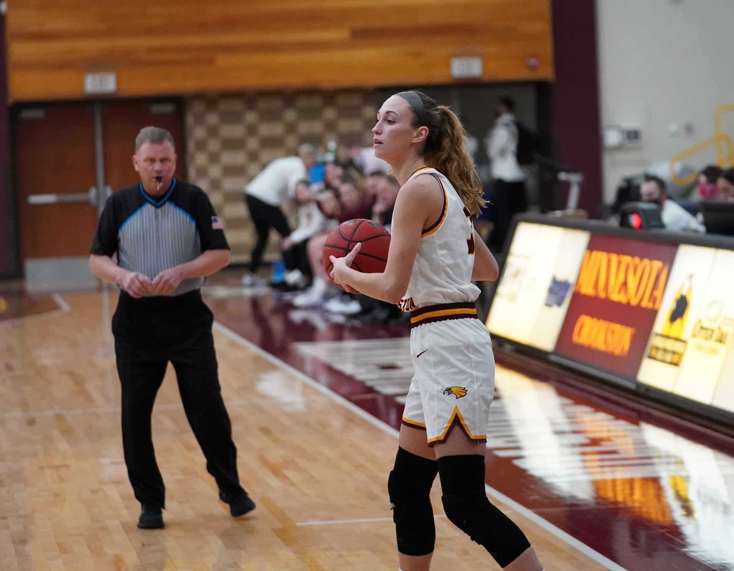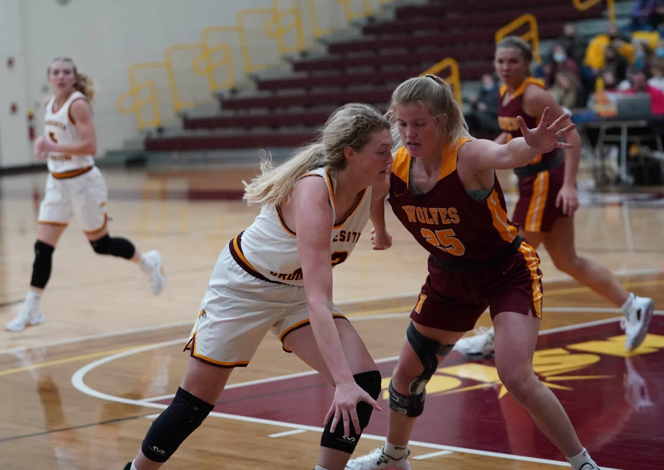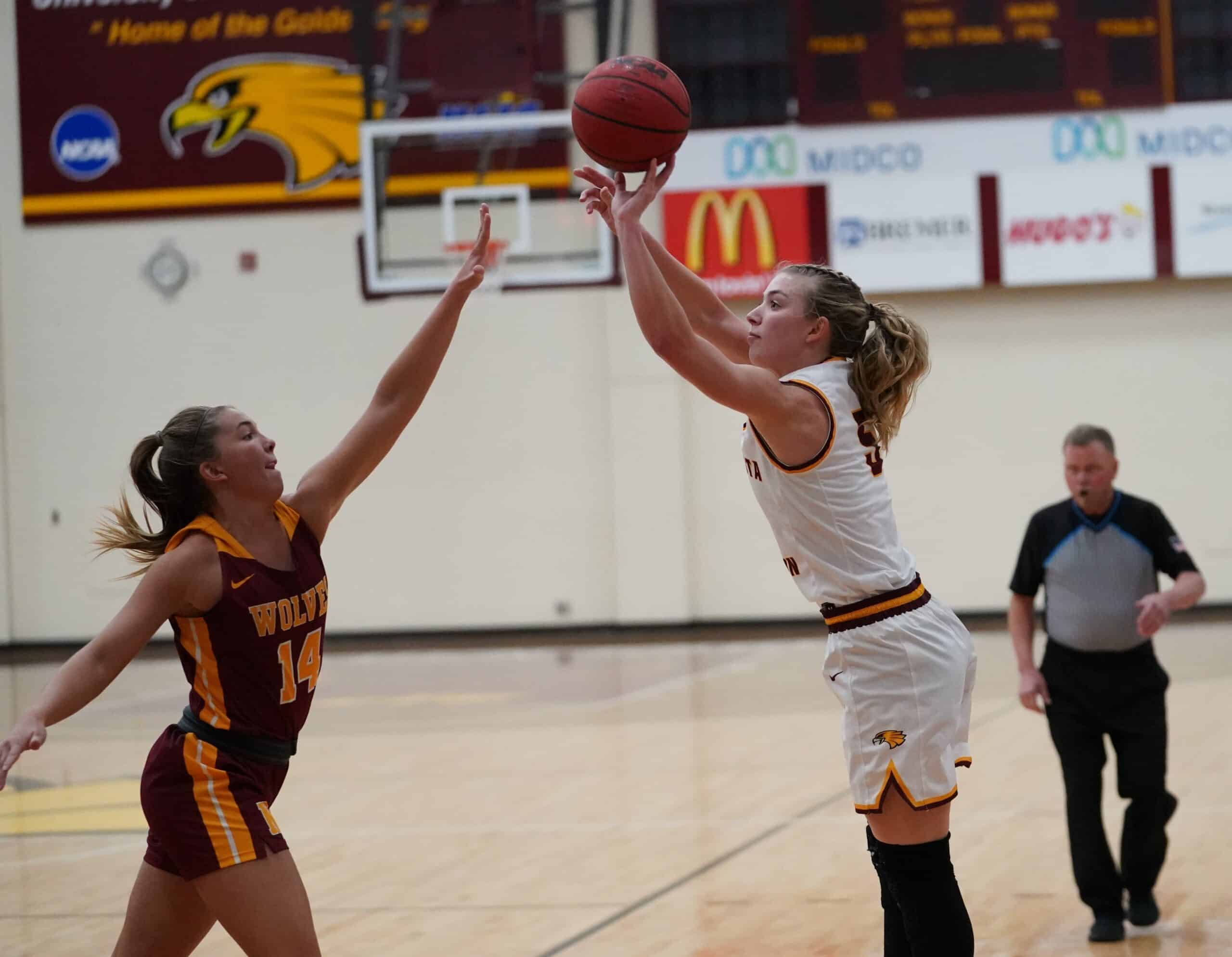 The University of Minnesota Crookston (UMC) Golden Eagles Women’s Basketball team hosted the Northern State University Wolves on Friday night inside of Lysaker Gymnasium. The Golden Eagles were looking for their first conference win of the season, but they’ll continue to search after Northern State used a couple of big runs and solid defense on their way to a 64-47 win over the Golden Eagles.