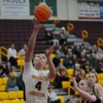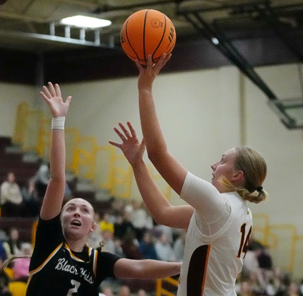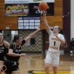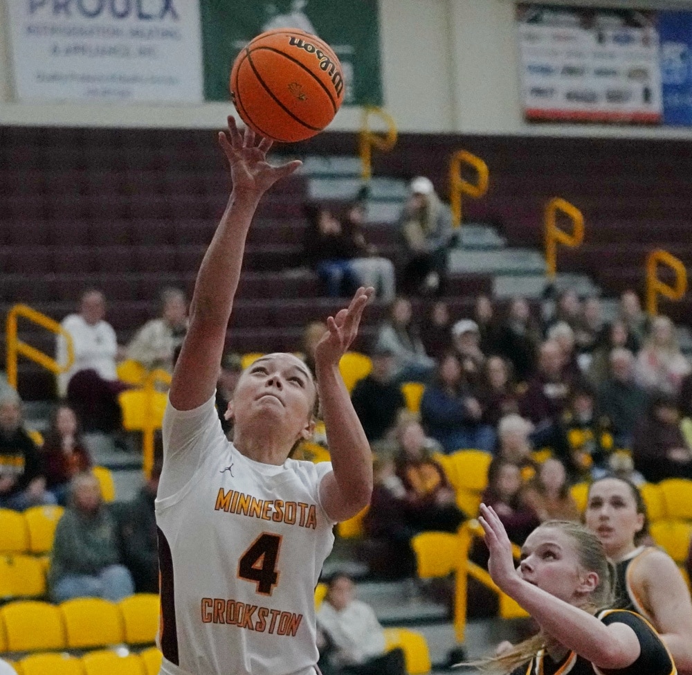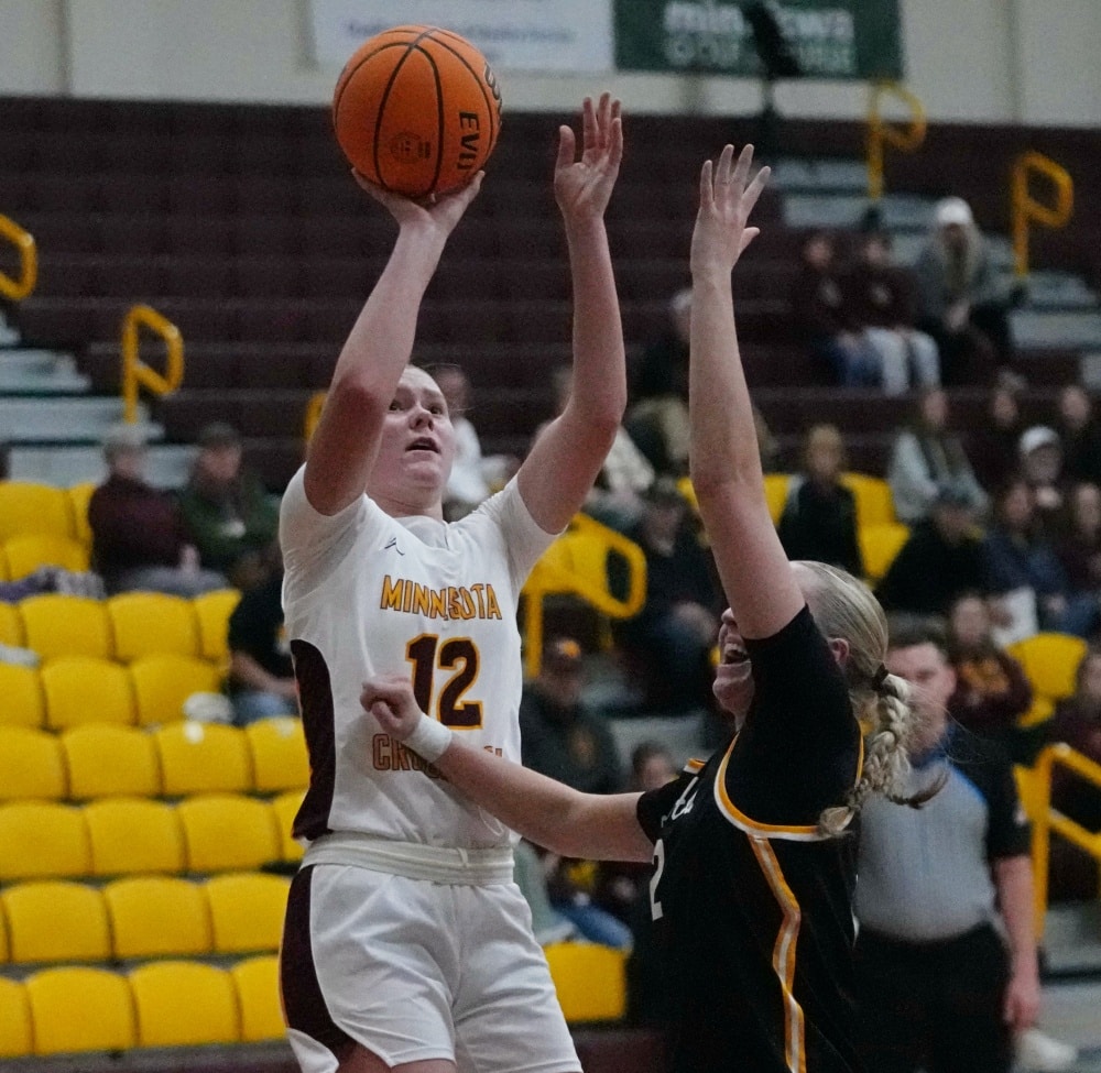 The University of Minnesota Crookston Golden Eagle Women’s basketball team had a strong fourth quarter to beat the Black Hills State Yellowjackets 75-68 in the home opener at Lysaker Gymnasium in Crookston. UMC senior, Emma Miller scored 26 points and became the Golden Eagle Women’s Basketball career all-time leading scorer, breaking Jamie Zelinsky’s record of 1,724 points back in 2011.