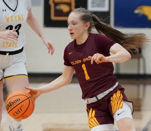 The University of Minnesota Crookston Golden Eagle Women’s Basketball team struggled to make their shots in the second half and the Wayne State Wildcats pulled away for a 67-52 victory in a Northern Sun Conference game at Lysaker Gymnasium in Crookston.