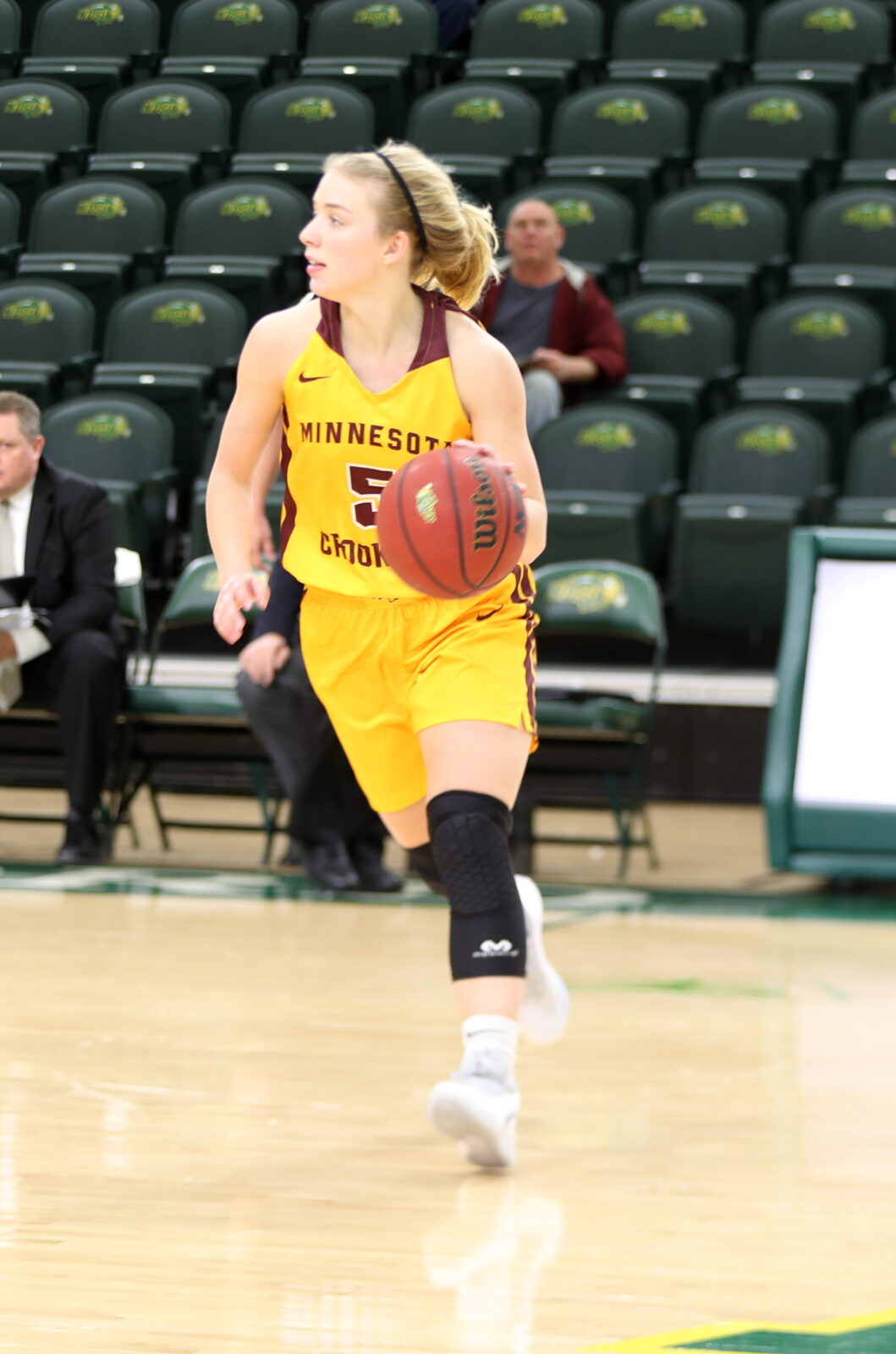North Dakota State opened the second half with an 8-0 run to take a 47-33 lead before Mary Burke (R-Fr., Virginia) made a short jump shot from the paint. The Bison used another 9-point run to gain a 56-37 lead. North Dakota State continued to pull ahead in the third quarter limiting Minnesota Crookston to just 10 points and taking a 62-43 lead into the final quarter. “Our youth kind of got exposed a little bit tonight,” said Roysland. “We had a couple of miscues on guards not communicating, but our upperclassmen need to be better. (NDSU) were just completely in control. We got exposed. It was a player making a mistake one trip and a different player on the next trip. We did a better job covering up the paint, and it opened up some threes for them.”