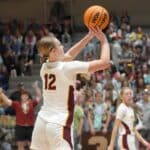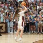 The teams exchanged baskets at the start of the half, and with Southwest leading 50-30, UMC’s Miller scored four points to get within a 50-34 deficit, and the Mustangs answered with three free throws. The back-and-forth battle continued as UMC’s Westby converted a three-point play to get within a 53-17 deficit four minutes into the quarter. All the momentum UMC had was taken away when the Mustangs scored eight straight for a 61-37 lead with four minutes left in the quarter. UMC answered with a 6-2 run with four points from Halle Winjum (Fresh. Crookston) and a basket from Miller. Southwest ended the quarter with a basket to take a 65-46 lead into the fourth quarter.