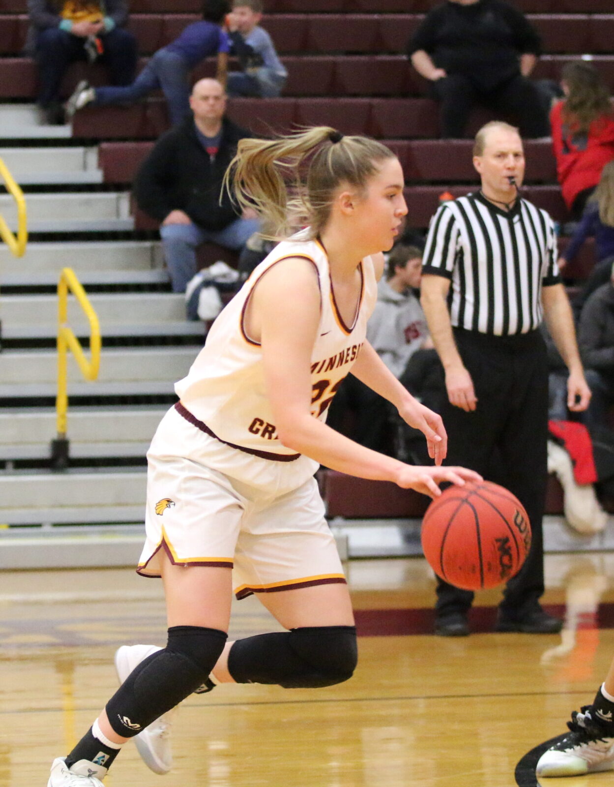 Minnesota Crookston opened the third quarter with a 6-2 run capped off by a lay-up by Abby Guidinger (Jr., Waukesha, WI), giving the Golden Eagles a 41-32 lead. SMSU responded with an 8-2 run pulling within 43-40 with 1:15 to play in the quarter. Julia Peplinski countered with back-to-back baskets giving UMC a 47-40 lead. Southwest Minnesota State closed the quarter on a 5-0 run trimming their deficit down to 47-45 going into the final quarter. “I thought the kids stayed confident,” said Roysland. “We weren’t scoring very well from the outside, so we set the offense to run through the inside.”