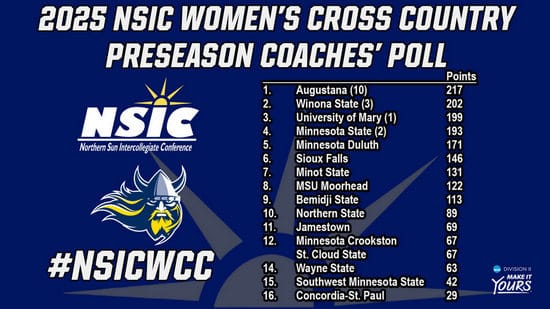 The University of Minnesota Crookston women’s cross country team was picked to finish in a tie for 12th in the NSIC Preseason Coaches’ Poll released Monday by the conference office. UMC finished 11th of 15 teams at the 2024 NSIC Championship.