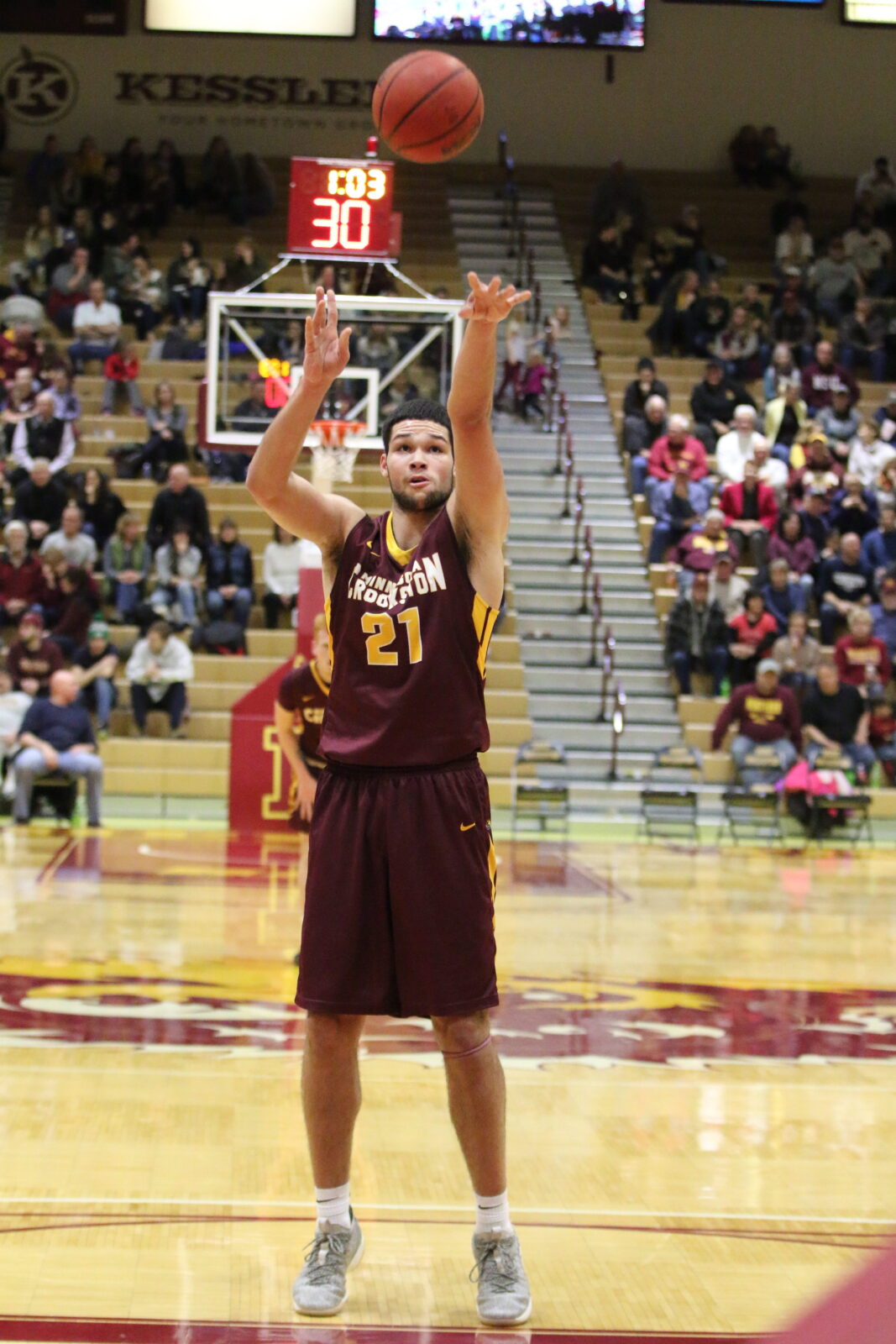 Chase Knickerbocker (Sr., Annandale) opened the game with a three-pointer for Minnesota Crookston giving the Golden Eagles a 3-0 lead. Following a Northern State three-pointer, Knickerbocker scored a mid-range jump shot to push the visitors ahead 5-3. Northern State responded with a 5-0 run to take an 8-5 lead before Josh Collins (Sr., Minneapolis) made a jumper to pull UMC within one before Malcolm Cohen (R-Jr., Detroit, MI) knocked down a jump shot giving Minnesota Crookston a 9-8 lead. The Wolves countered with a 7-0 run before a Cohen three-pointer trimmed UMC’s deficit down to 15-12 with 13:23 left in the first half. An 8-0 run gave Northern State a 26-15 lead halfway through the first half before a Ben Juhl (Soph., Clive, IA) jump shot sparked a 5-0 run bringing the Golden Eagles within 26-20. Trailing 31-20, Ben Juhl made jump shot followed by a three-pointer from Harrison Cleary to begin a 7-0 run cutting the deficit down to 31-27 with 2:22 left in the half. Northern State closed the half with a jumper giving the Wolves a 34-29 halftime lead. “They had way too many points early,” said UMC head coach Dan Weisse. “We really clamped down in the last ten minutes of the first half. The first ten they were doing what they wanted to do, but our defense kept us in the game.”