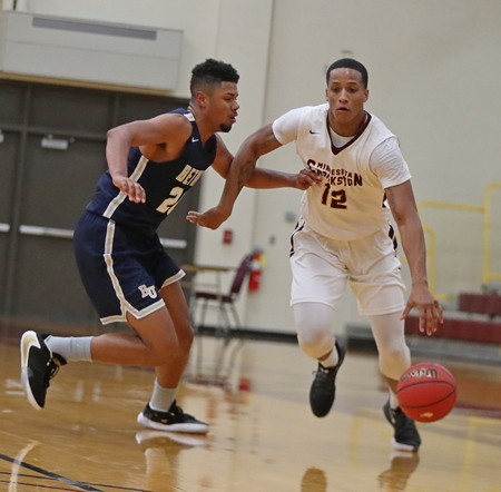 Malcolm Cohen (R-Sr., Detroit, MI) opened the scoring with a jump shot just outside the paint, giving the Golden Eagles a 2-0 lead. UMC’s hot shooting continued with a Brian Sitzmann (R-Soph., Savage) three-pointer boosting UMC’s advantage to 5-2. Cohen followed with a triple of his own to make it 8-3. The Golden Eagles continued pulling ahead with three-pointers from Harrison Cleary (Sr., Oak Creek, WI) and Malcolm Cohen on back-to-back possesions giving Minnesota Crookston a 21-12 lead. The Golden Eagles offense continued to roll in the first half, leading by as many as 22 points in the first half before closing the first half with a 51-31 lead. “I think our spacing, our movement, our energy,” explained UMC head coach Dan Weisse of his team’s strong first-half. “The shots were falling, that always helps a little bit. I thought our defense was solid. Overall, the first half there were certainly a lot of positives to take away from that, but I also wanted to see us handle the controllable better in the second half when they made their run.”