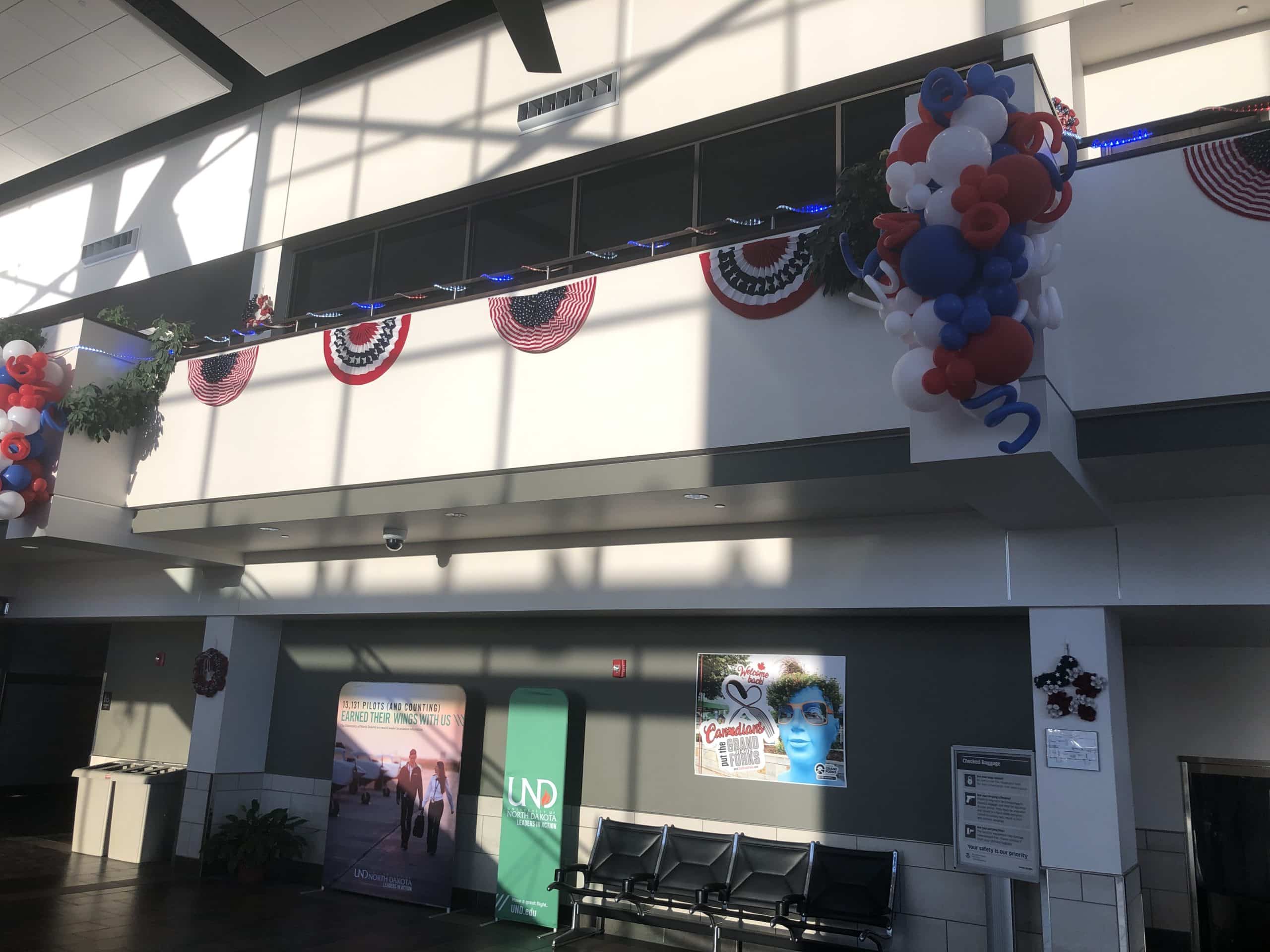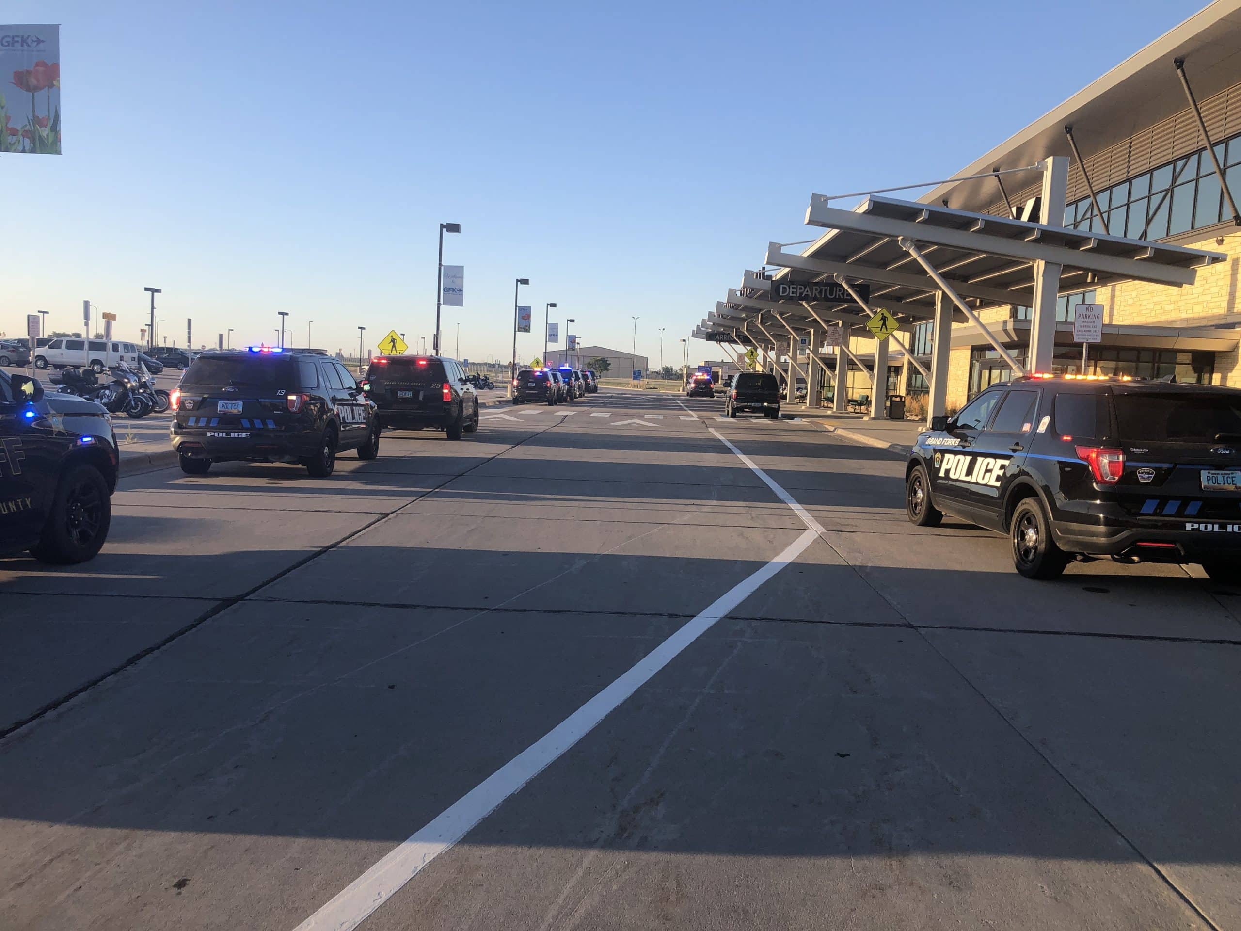 The Veterans Honor Flight of Minnesota and North Dakota sent many local veterans from Crookston, Red Lake Falls, Euclid, Fertile, and other local counties to Washington D.C. this morning from the Grand Forks International Airport. The veterans were greeted with lines of flags and lights from the Grand Forks Police Department and the Honor Flight team as they arrived at the airport early in the morning and then boarded the plane. As the plane began to move towards the runaway for it to take off, the Grand Forks Fire Department fired their hoses over the plane to give an arc of water for them the travel under before they took off for Washington D.C.