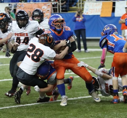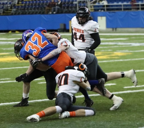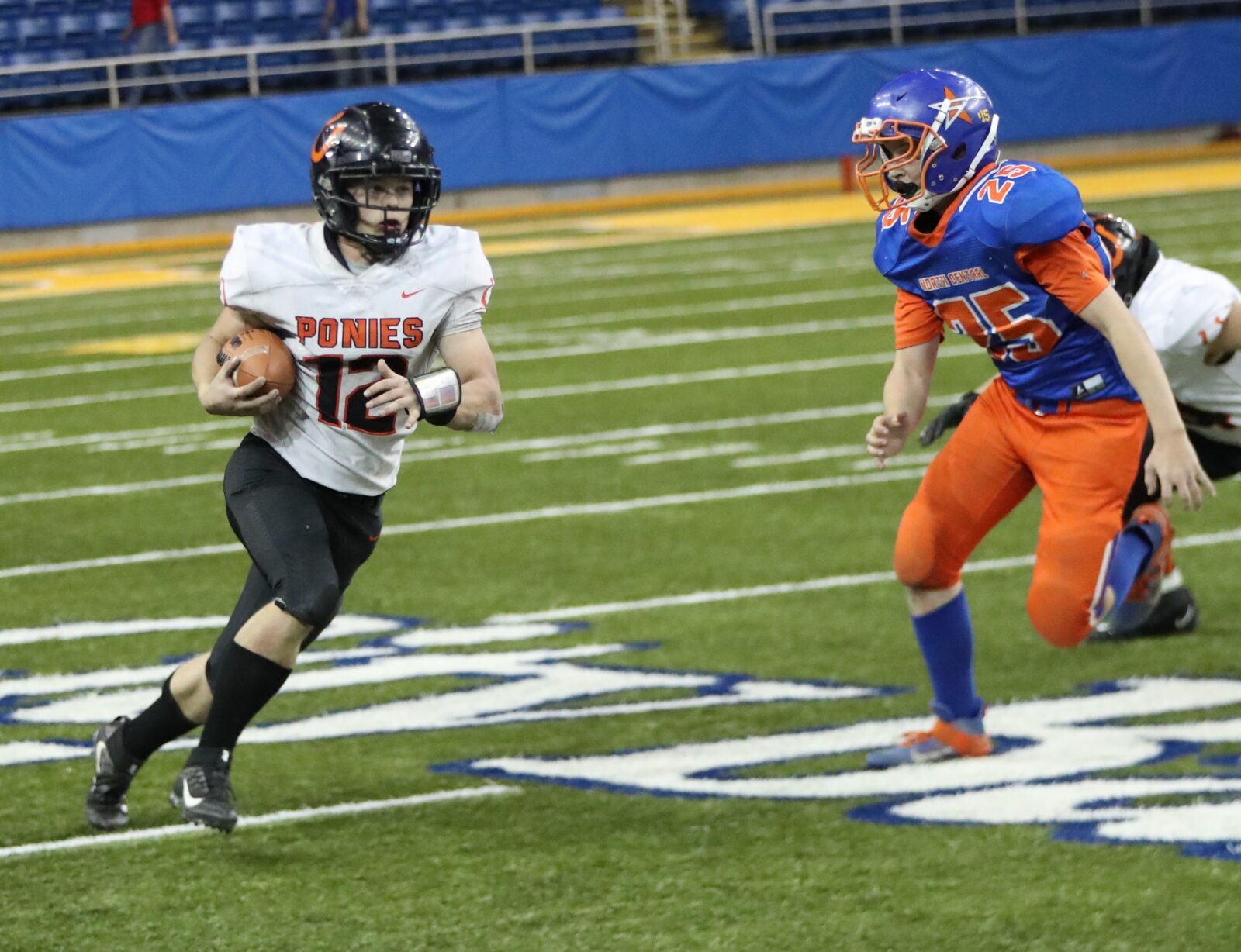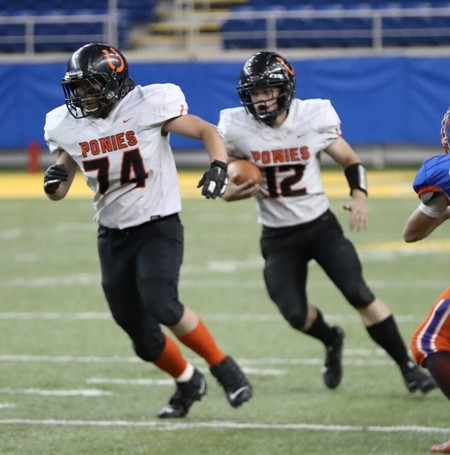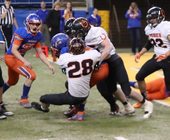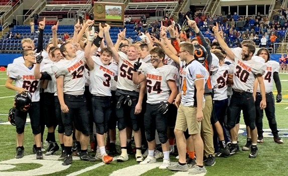 Senior linebacker Gunnar Jorgenson secured an interception in the endzone on the final play of the game as the Warren-Alvarado-Oslo Ponies won their first Section 8 9-man championship 14-12 over North Central in the Fargo Dome.