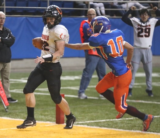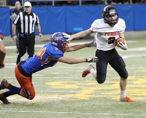 After both offenses traded three-and-outs to start the second half, Warren-Alvarado-Oslo appeared poised to add to their lead. The Ponies drove the ball down to the Stars 13-yard line, but a fumble recovered by North Central gave the Stars the football and a chance to regain the lead. The Stars marched the ball down the field down to the Ponies’ 5-yard line, where North Central faced 4th down-and-3, but a delay of game penalty forced the Stars’ back to the 10-yard line. On 4th-and-8, quarterback Jack Gilbert rolled to his left and floated the ball to the end zone. The pass went through the hands of a Ponies linebacker and fell into the arms of tight end Anthony Cipriano in the end zone for a touchdown giving North Central a 12-8 lead after the failed two-point conversion with 0:20 to play in the third quarter. On the ensuing kick-off, the Stars executed an onside kick that hit a Warren-Alvarado-Oslo blocker and was recovered by North Central.