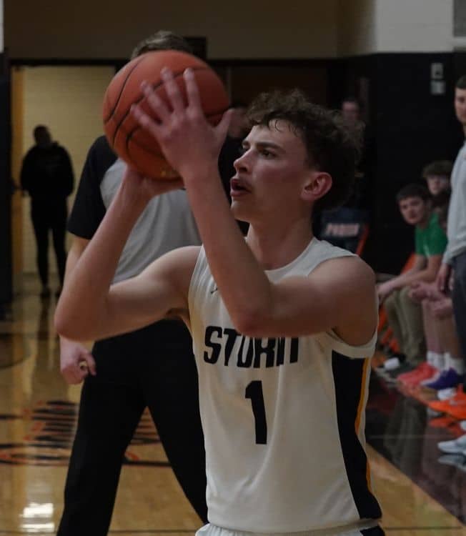 The first half could not have started much better for the Ponies, as they could not miss from beyond the arch. Specifically, Kyden Kotrba, who hit three deep shots in the first 5 minutes as part of a 13-2 run to open the half. The Storm began to get some more things going, getting big layups from Raydon Woinarowicz and Shay Setterholm, but each time the Ponies had an answer. Kotrba hit his 4th 3-pointer, and Sidney Carlson hit one from off the bench to give the Ponies a 23-12 lead. The Ponies hit their largest lead of 12, at 28-16 with 5:19 remaining, but after they hit that number, the Storm held them scoreless for over 4 minutes. However, the Storm could only score 3 points in that span, making it 28-19. In the final minute, the Storm cut the deficit to 6 at 29-23. However, with 10 seconds left, Sidney Carlson hit his 2nd 3-pointer of the game, and that allowed the Ponies to take a 32-23 lead into the half.
