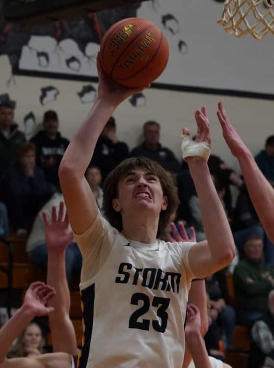 Each team scored one bucket in the first 2:13 of the half, making the score 34-25. Then, after Anders Thompson hit a 3-pointer, back-to-back turnovers on the inbounds pass led to two Raydon Woinarowicz layups, and all of a sudden the game was down to 34-32. The teams would then alternate points until it was 38-36, and that’s when the Ponies scored 5, capped off by a Noah Sedlacek 3-pointer to give WAO a 43-36 lead. Stephen-Argyle had another answer, however, and brought the lead back to 45-43. However, that seemed to be all the Storm had in the tank. With under 6 minutes left, the Ponies pulled off a 7-0 run, capped off by the 5th Kyden Kotrba 3-pointer of the game, putting the Ponies up 54-45. This lead would end up being insurmountable for the Storm. Their attempt at a late run proved futile, and the Ponies held on for a 62-54 wire-to-wire victory.