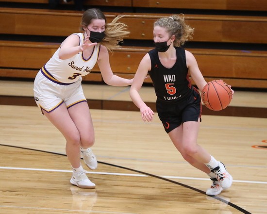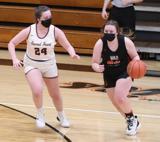WAO started the game by winning the tip and getting a quick basket from Emily Pederson a few seconds into the game for a 2-0 lead. Sacred Heart responded with back-to-back Sydney Llyod baskets and Grace Vonesh capped a 6-0 run with a basket in the paint to give the Eagles a 6-2 lead with 15 minutes left in the half. The rest of the half belonged to WAO as Gracie Anderson scored to spark a 15-0 run over an almost 15-minute span for a 17-6 lead. Sacred Heart finally broke the run with two Llyod free throws with 2.3 seconds left in the half to cut the deficit to 17-8 going into halftime.