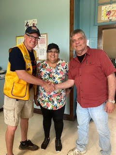 WARREN LIONS CLUB TONY GULLIKSON PRESENTS CASH DONATION TO CARE AND SHARE OF CROOKSTON