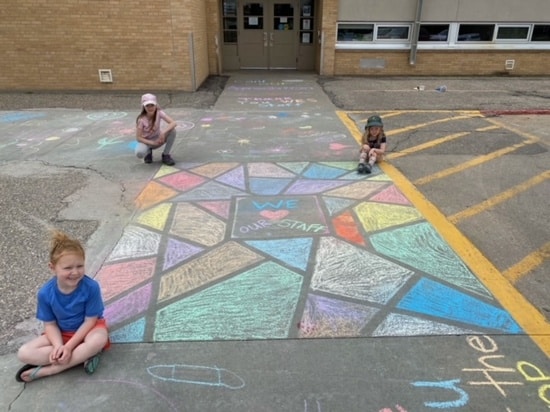 Several Washington and Highland Elementary School families helped decorate the sidewalks to show their appreciation for the teachers and staff at the schools to kick off Teacher Appreciation Week. Some of the pictures are below –