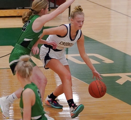 East Grand Forks dominated the first five minutes of the second half as they outscored Crookston by an 18-5 margin. Â East Grand Forks had five different players score in the run and were led by Camryn Adams’ two three-pointers for six points, and the Green Wave led 37-33 with 12:43 remaining.Â