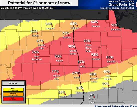 WINTER STORM WARNING ISSUED FOR TUESDAY IN THE RED RIVER VALLEY